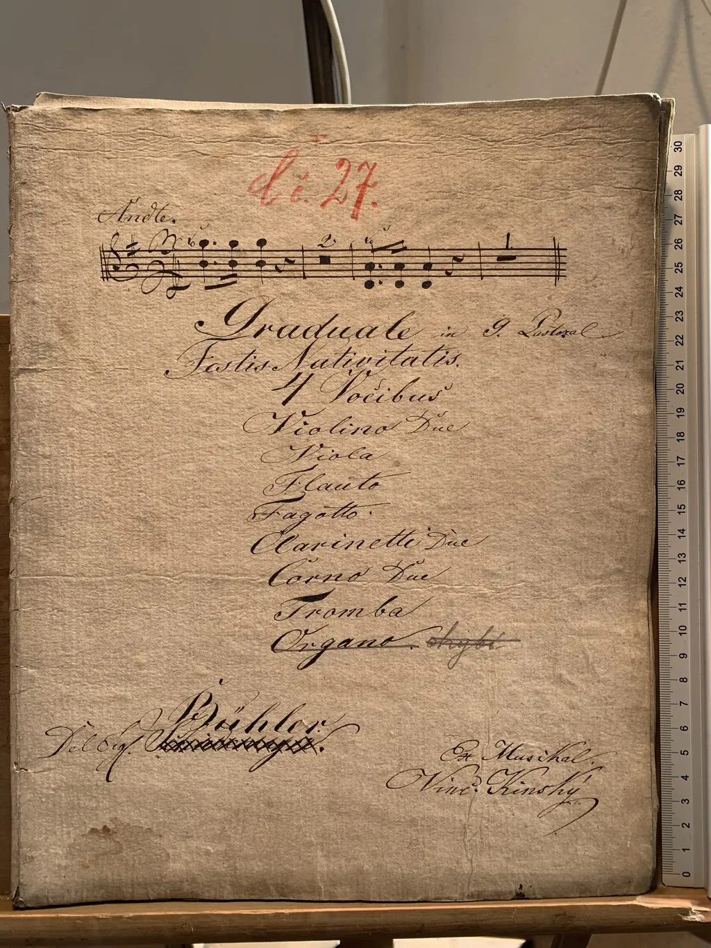 Graduale in g Pastoral | Festis Nativitatis | 4 Vocibus | Violino Due | Viola | Flauto | Fagotto | Clarinetti | Due | Corno Due | Tromba | Organo | Del Sig. Bühler | Ex Musikal | Vinc. Kinský