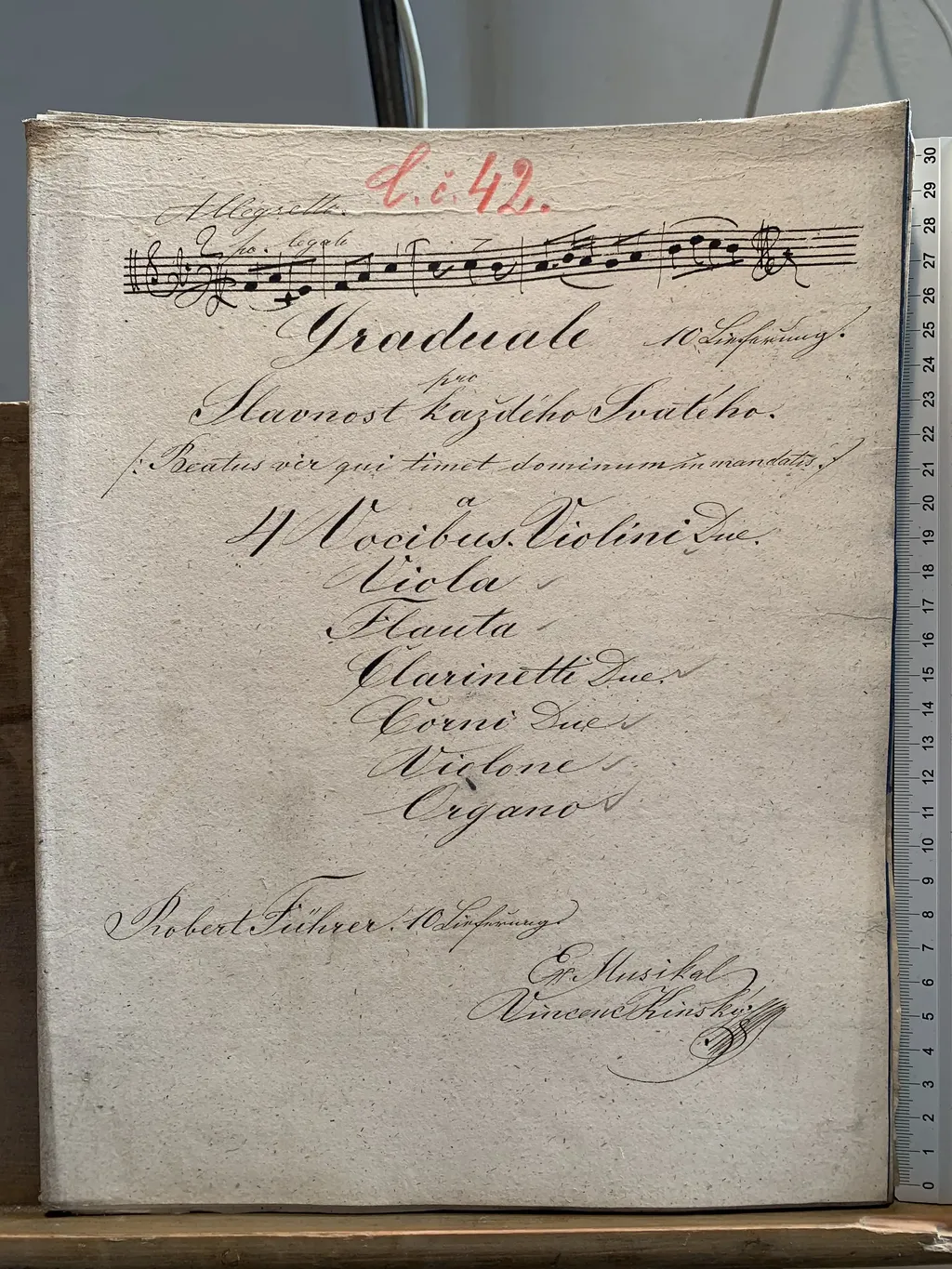 Graduale 10 Lieferung | pro | Slavnost každého Svatého. | /: Beatus vir qui timet dominum in mandatis :/ | a | 4 Vocibus. Violini Due. | Viola | Flauta | Clarinetti Due. | Corni Due | Violone | Organo | Robert Führer. 10 Lieferung. | Ex Musikal | Vincenc Kinský MP