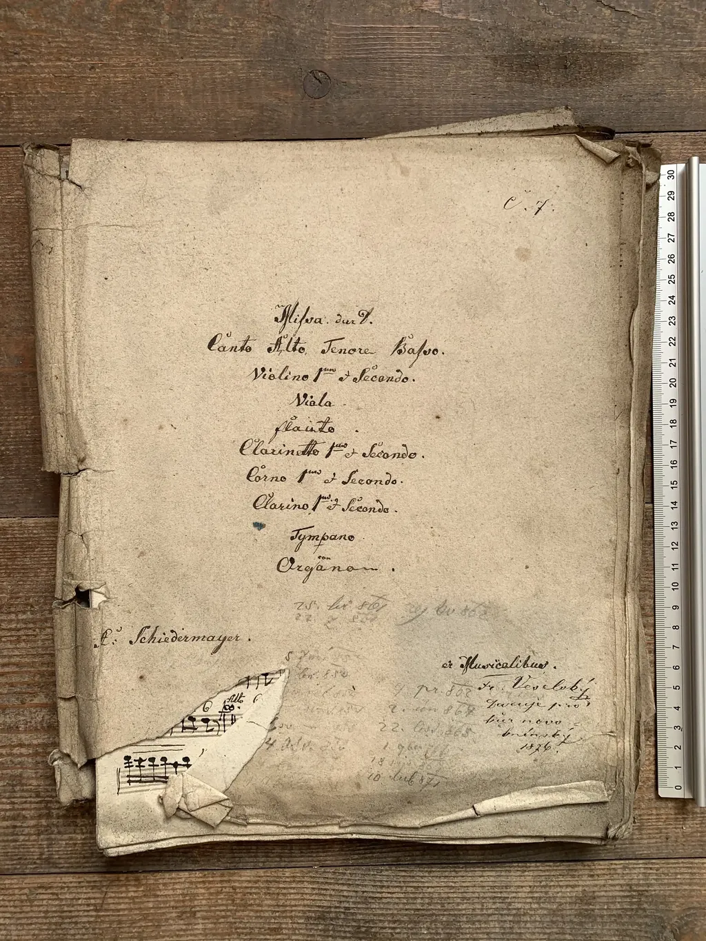 Název: Missa dur D Skladatel: Johann Baptist Schiedermayr Vlastník: František Veselský Titulní list: