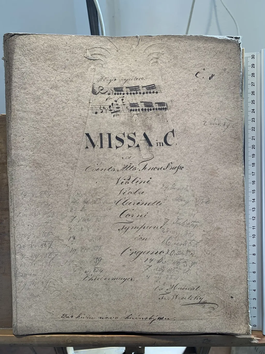 Název: Missa in C Skladatel: Johann Baptist Schiedermayr Vlastník: František Veselský Titulní list: