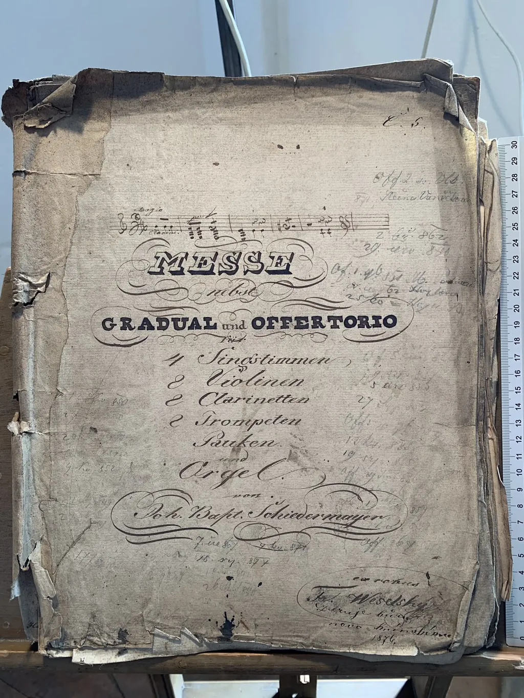Název: Messe nebst gradual und offertorio Skladatel: Johann Baptist Schiedermayr Vlastník: František Veselský Titulní list:
